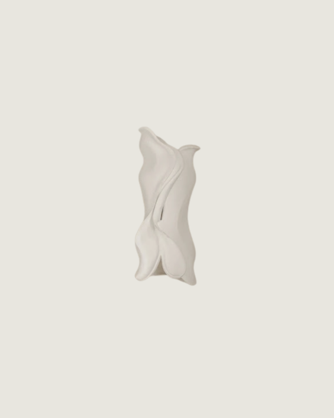 The Vetrovka Wall Sconce is formed from unglazed beige stoneware shaped into an organic vertical fold. Its sculptural form reads like a wall-mounted art piece, casting layered shadows through its central cavity. Ideal for gallery-like spaces, passageways, or living rooms where texture and light work together.